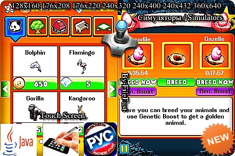 Ты любишь животных? Ты мечтал открыть свой зоопарк? Создай самый лучший, интересный и очень привлекательный зоопарк для улучшения твоей популярности. Принимай новых животных. Завершай задания и повышай уровень для улучшения твоего зоопарка. Год выпуска/Year of issue: 2012 Жанр/Genre: Симуляторы / Simulators Категория/Category: Java игры/Java games Размер экрана/Screen size: 128x160 : L2,L6,C261 Rus SAM E250,E300,X300 Rus SE K310,K320,K500,W200,W300,Z530 Eng SE K310,K320,K500,W200,W300,Z530 Rus 176x208 : S60 2ed Rus 176x220 : MOT E398,E770,L7,K1 Rus SE K550,K610,W350,W810,Z710 Eng SE K550,K610,W350,W810,Z710 Rus 240x320 : MOT Е1000,E6,V3 Rus SAM D600,D800,D900 Rus S40 3ed Rus S60 3ed Rus SE K770,K790,K800,S500,T650,W850 Eng SE K770,K790,K800,S500,T650,W850 Rus 240x400 : SAM M8800, i900, s5230 TS Eng 240x432 : SE U10i Aino Eng 360x640 : S60 5ed Eng SE Satio Eng 480x800 : SAM S8000 Rus Разработчик/Developer: Gameloft Платформа/Platform: Java Формат файла/File format: .jar Вид устройства/Appearance of the device: для телефонов/for phones Язык интерфейса/Interface language: русский (RU) английский (ENG) Размер/Size: 12,25 Mb Touch Screen/Stylus: есть/there are Статус игры/The status of the game: бесплатная/free Подготовил/Prepared by: FileFast